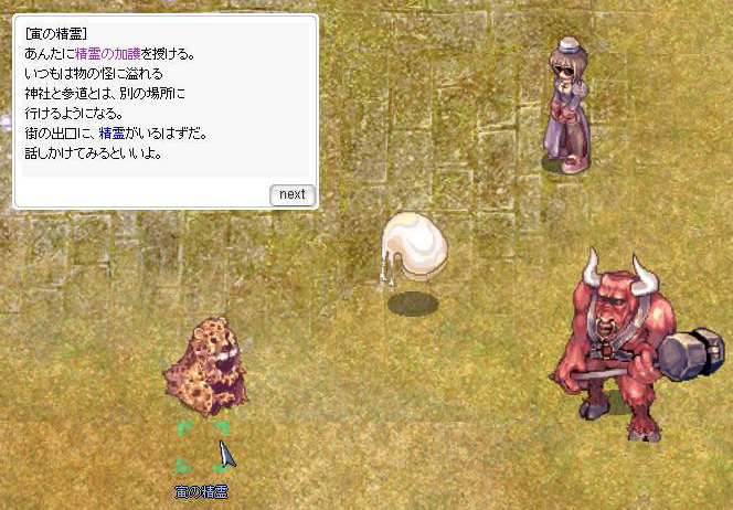 クエスト場所:アマツ港前(115、83)にいる「寅の精霊」