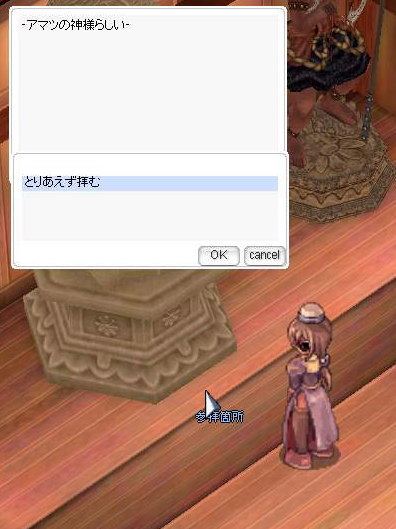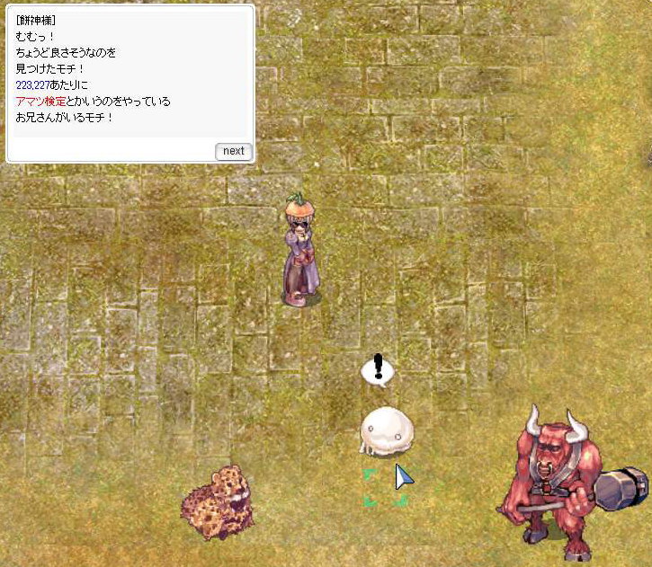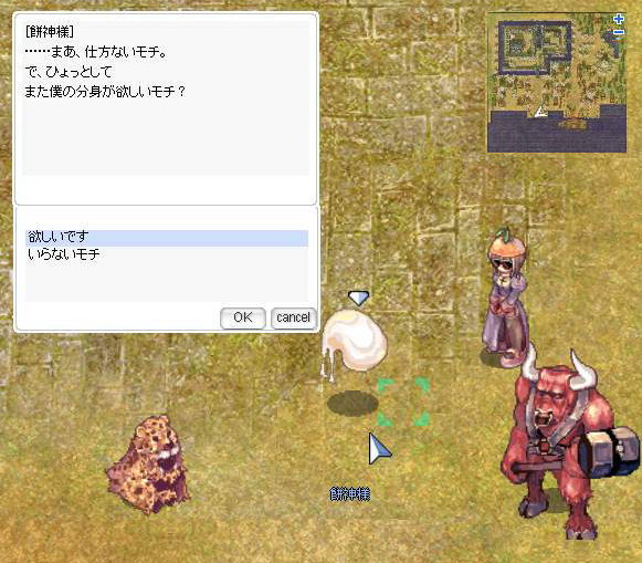 1、アマツ港前(119、86)にいる「餅神様」と会話。