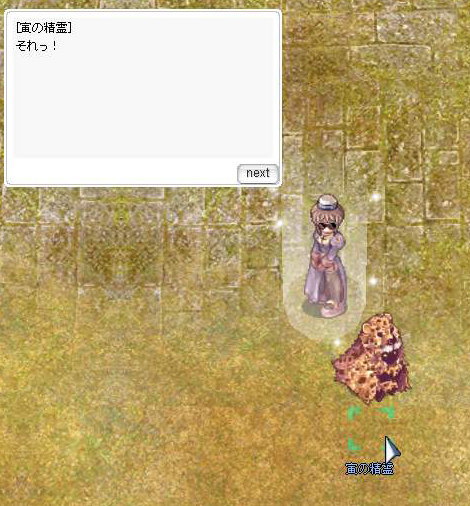 1、アマツ港前(115、83)にいる「寅の精霊」と会話。