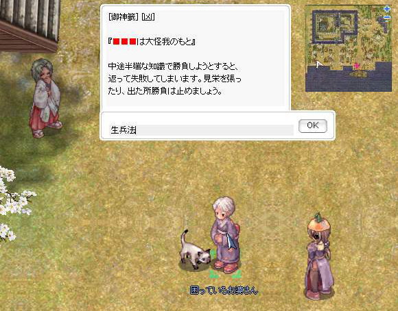 3、やや西(50、100)にいる「おばあさん」と会話。