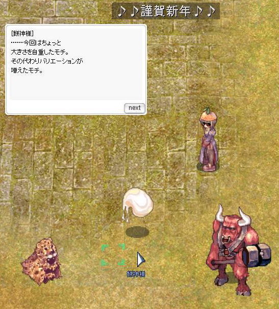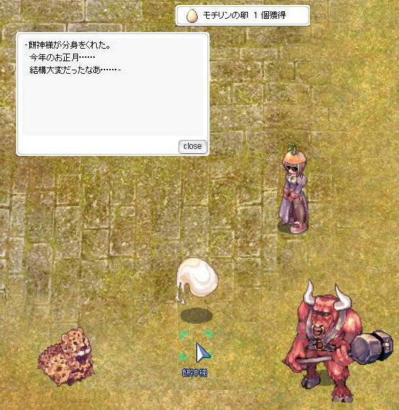 ・イベント内容は昨年の同イベント「餅神様の贈り物」とほぼ同じ。