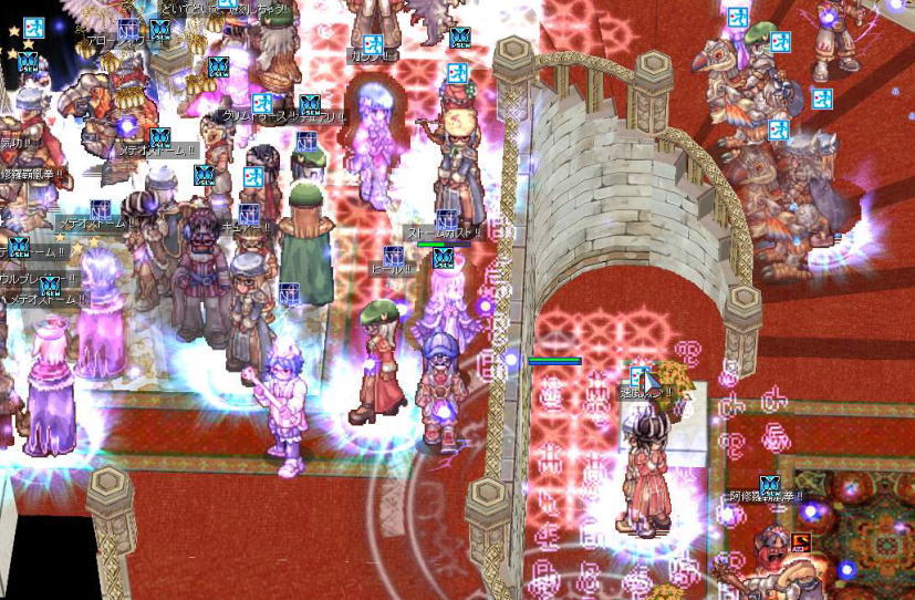 徐々に攻撃側が守護石への階段を進軍していきました。