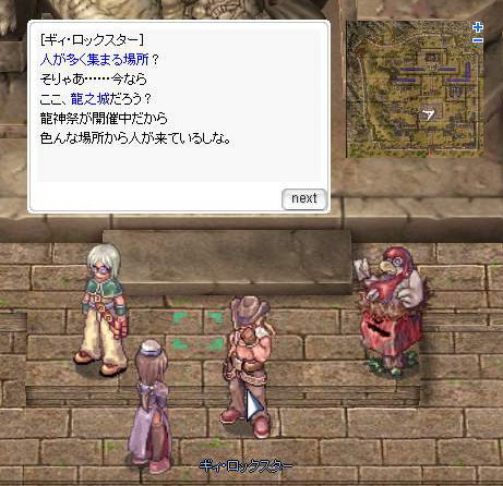 ・クエスト場所 :龍之城中央広場(218、117)にいる 「ギィ・ロックスター」