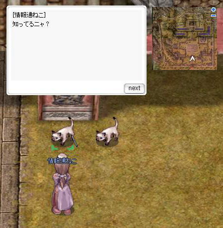 ・龍之城南門北にいる 「情報通の猫」 と会話すると、アドバイスを聞くことが出来る。