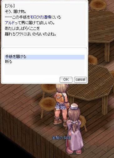 4、龍之城3時方向にある酒場(280、184)に入って左手にいる 「金髪の女性」 と会話、依頼を受ける。
