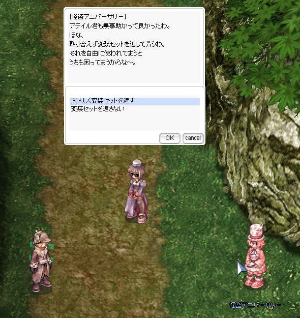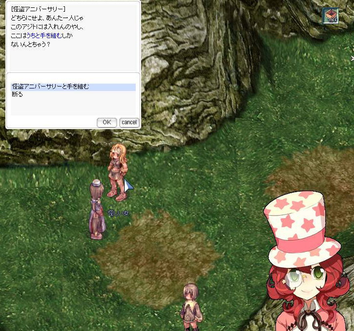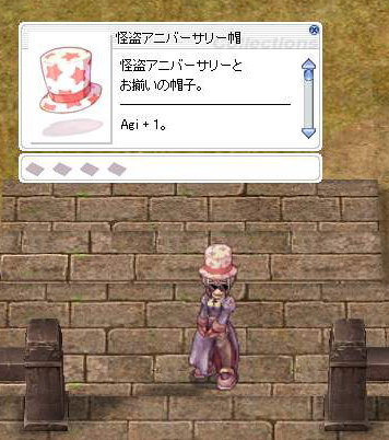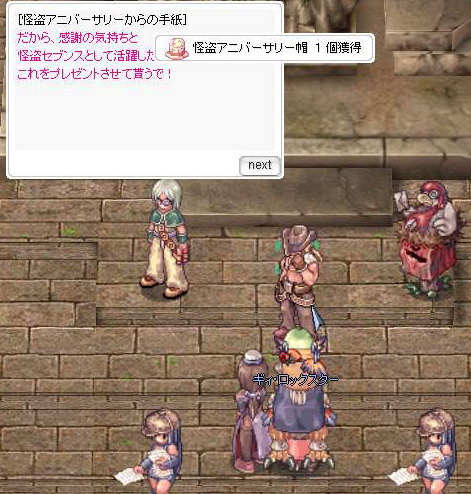 ・クエスト報酬 : 経験値(Base 300k、Job 100k) / 怪盗アニバーサリー帽 1個
