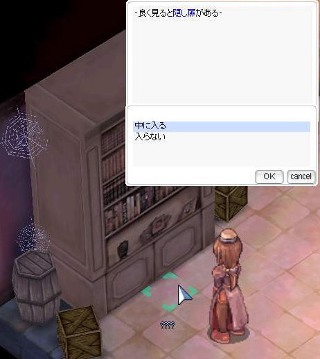 14、前の部屋に戻って左上の本棚にある 「???」 を調べる。
