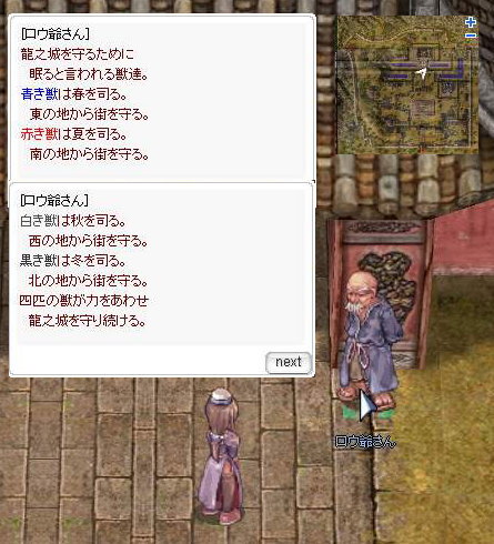 これに関するヒントは龍之城北(224、214)にいる 「老人」 が話してくれる。