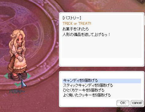 お菓子を持っていないと、イベントマップのスタート地点に戻されます。