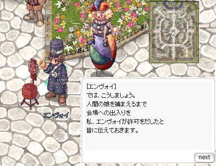プロンテラで「ジェスター人形」と一緒にいる「エンヴォイ」に話しかける。