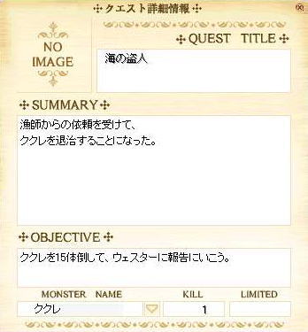そこで、若い冒険者に海の盗人ククレを15匹ほど退治してきて欲しいのじゃ