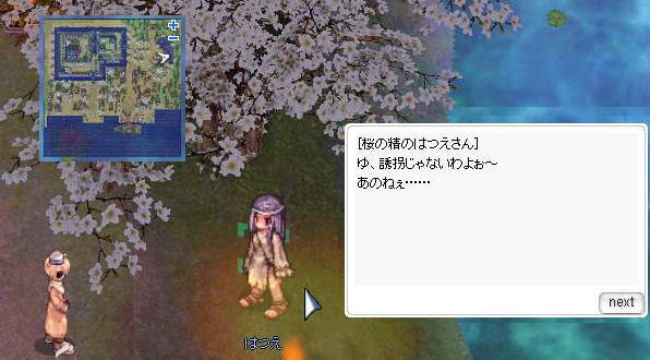 2、北の池(282,226)にいる [はつえ] と会話。