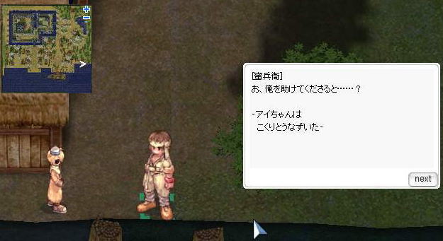 5、アマツ南東端(X: 288 Y: 108)にいる[蜜兵衛] と会話。