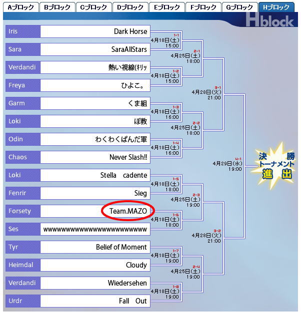 Hブロック 「Team.MAZO」 (4/18(土)18:00 第1回戦)