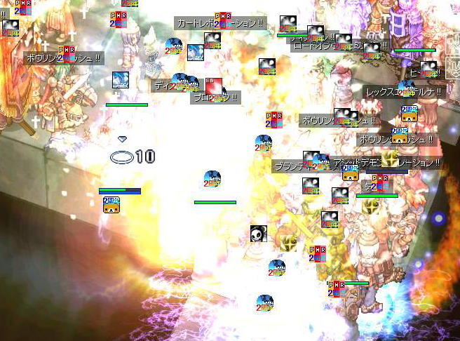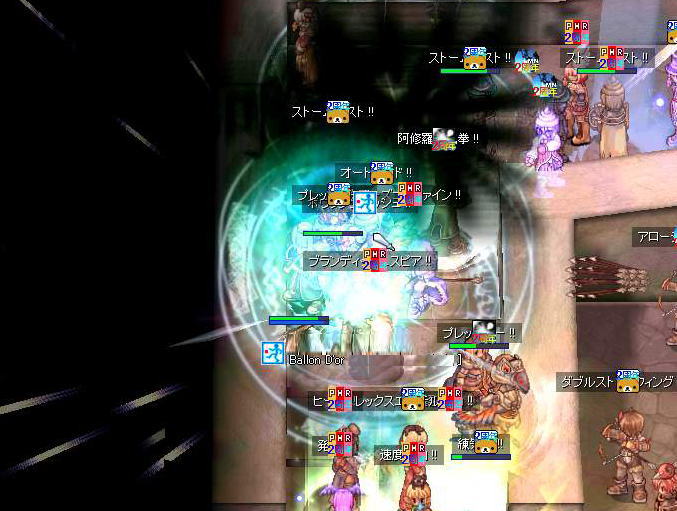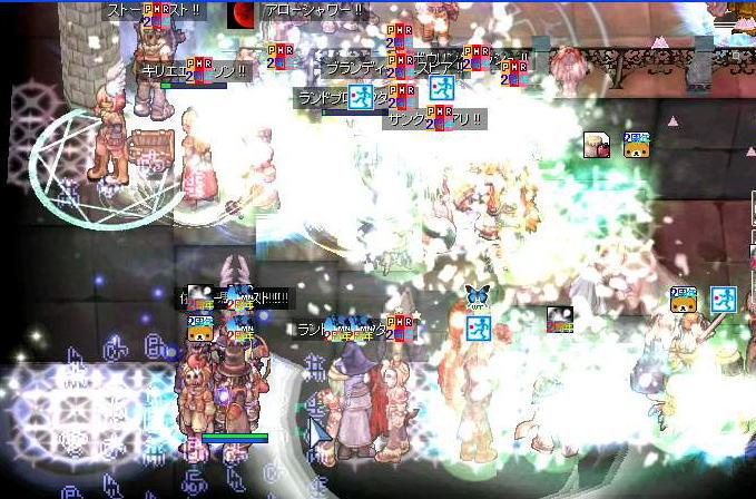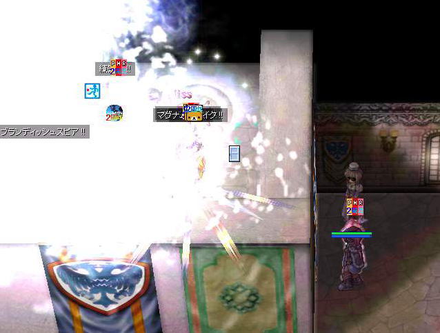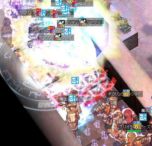 エンペルーム前で飛び交うブランディッシュスピアやボウリングバッシュ、