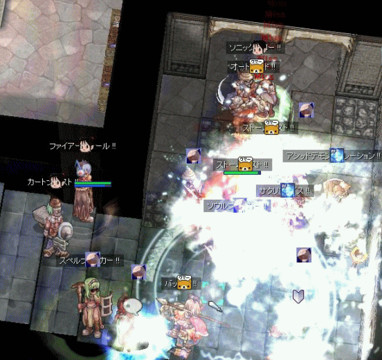 入り口方面からロードナイト、ハイウィザード、パラディンなどの別働隊が奇襲をしかけ、