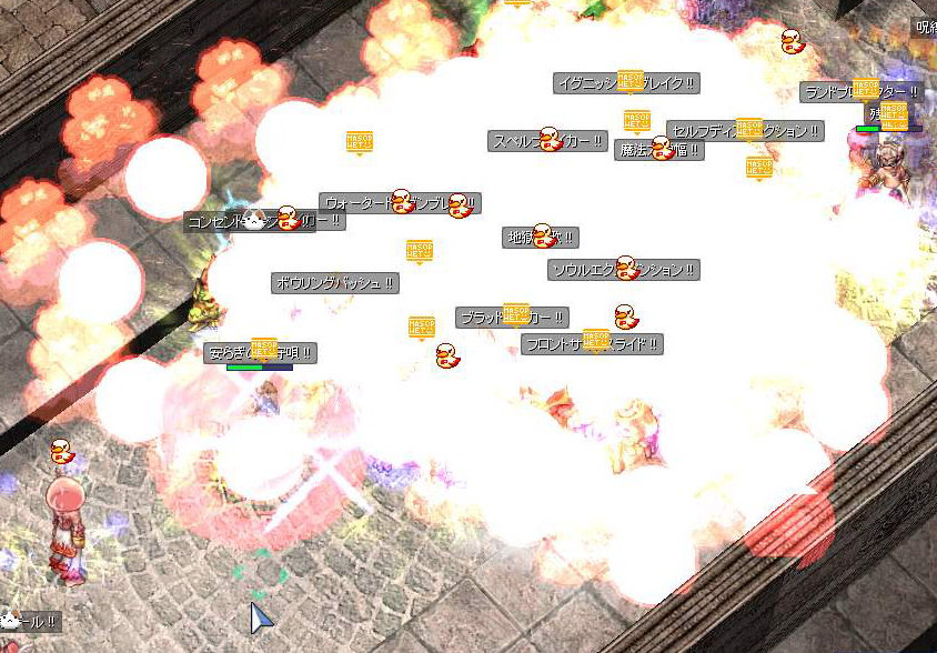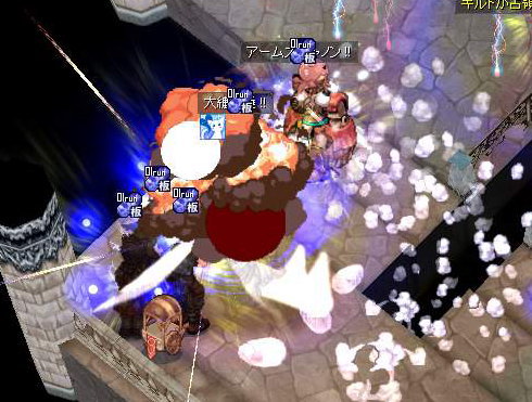 クリムゾンロックが降り注ぎ、「あ組」はほぼ殲滅されます。