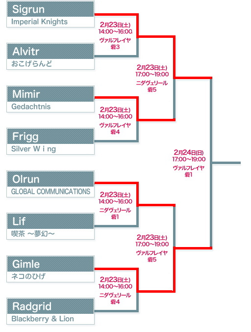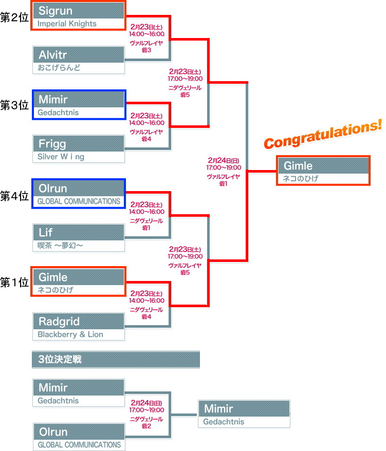 後半は前回決勝に進んだMimir、Olrun、Gimleがそれぞれしっかり守り、